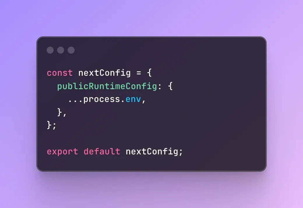 The above code is a good example of a common security issue that can arise in the pursuit of ease of development. The publicRuntimeConfig option is a feature provided by Next.js that allows you to set client-side accessible environment variables. This is useful for things like public API keys or settings needed for business logic. However, in the codeabove, we're assigningprocess.env in its entirety using the spread syntax. This means that we're exposing all of the server's environment variables to the client without exception.
