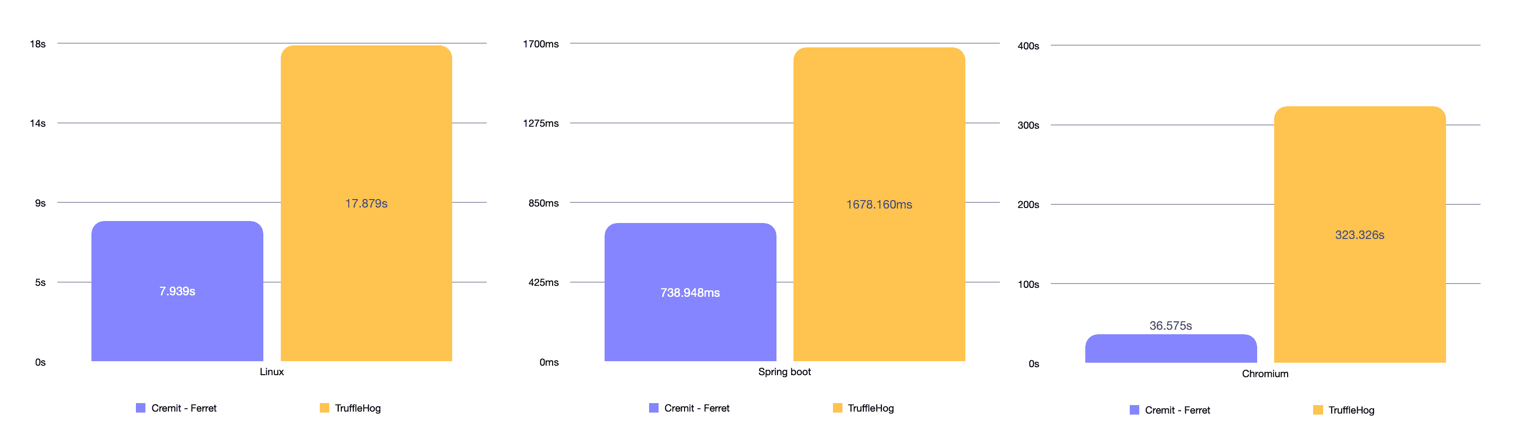 Probe significantly outperformed TruffleHog in scan speed across various environments, including Linux, Chromium, and Spring Boot. On average, Probe was 2x faster when scanning codebases and up to 8.8x faster for large projects like Chromium. This enhanced speed enables faster responses to credential exposures and greatly improves the efficiency of credential detection in large organizations.