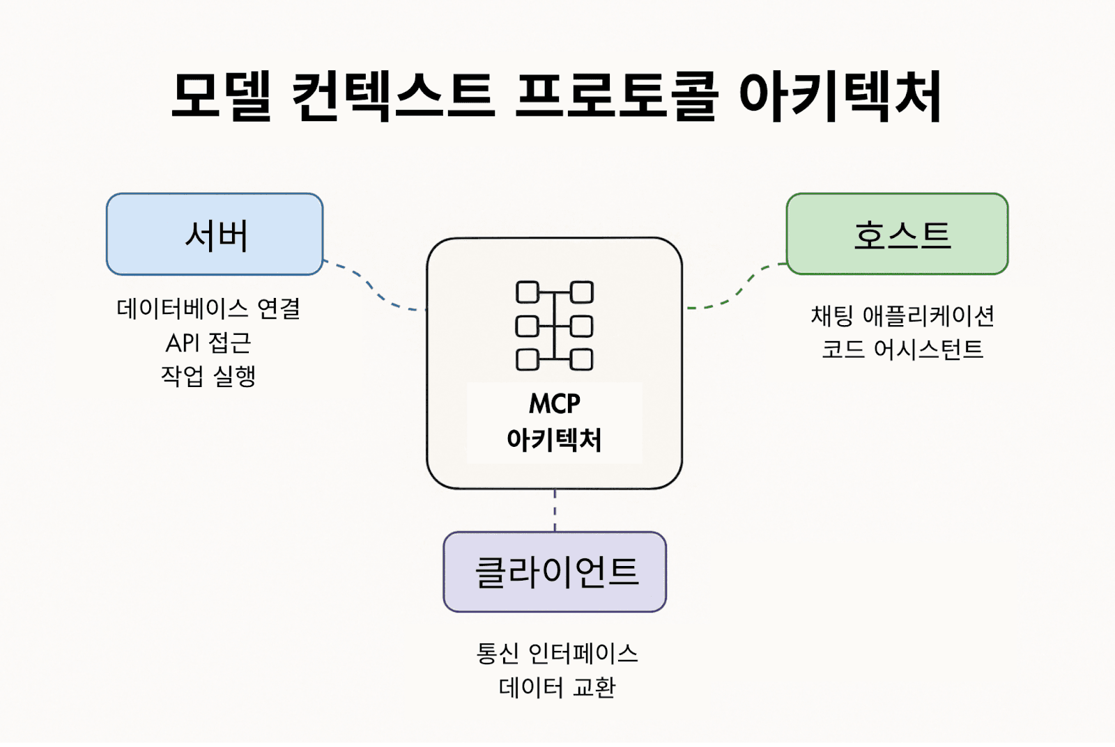 - 호스트: AI 애플리케이션이 실행되고 사용자가 AI와 상호작용하는 로컬 환경 (예: Claude Desktop, Cursor).