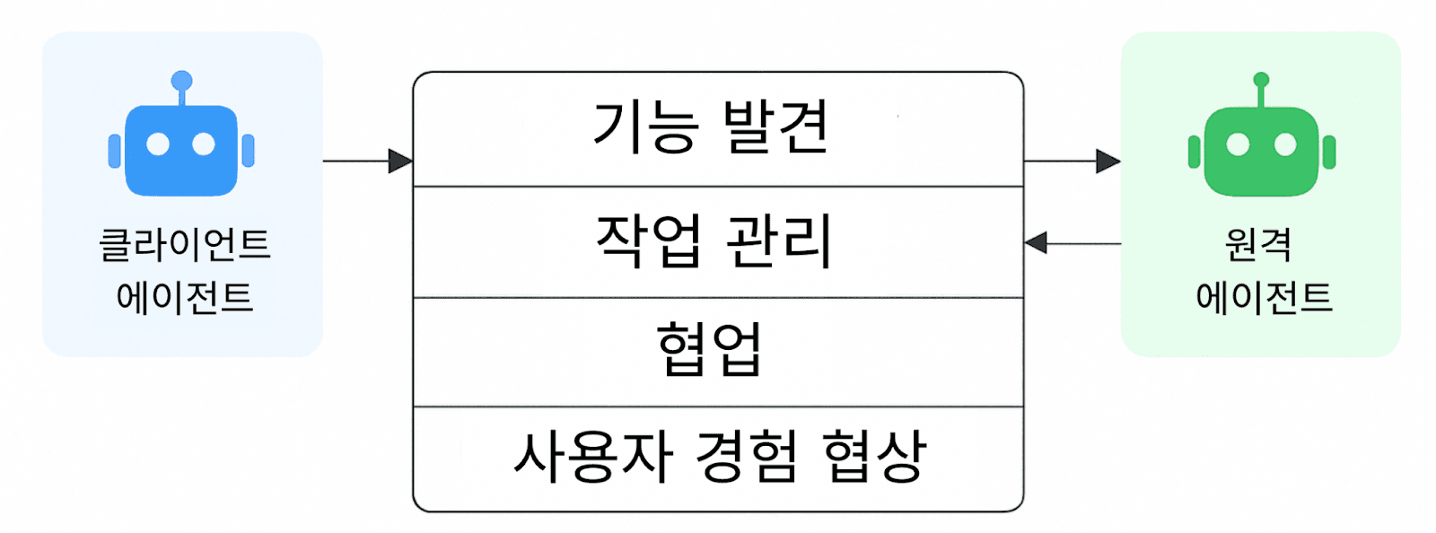 - 기능 발견: 에이전트는 JSON 형식의 "에이전트 카드"를 통해 자신의 기능을 알립니다.